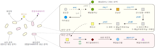 | ▲ 포도당으로부터 벤질아세테이트를 생합성하기 위한 미생물 균주 개발 및 공생배양 전략 (사진=KAIST 제공) |