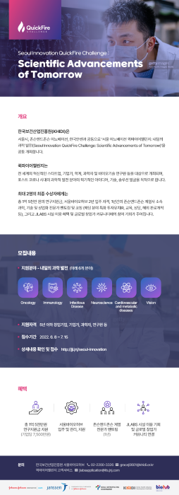 서울 이노베이션 퀵파이어챌린지는 진흥원과 서울시, 존슨앤드존슨이 2017년부터 매해 공동 개최하고 있는 전 세계 바이오 분야 기술혁신 경진대회다.