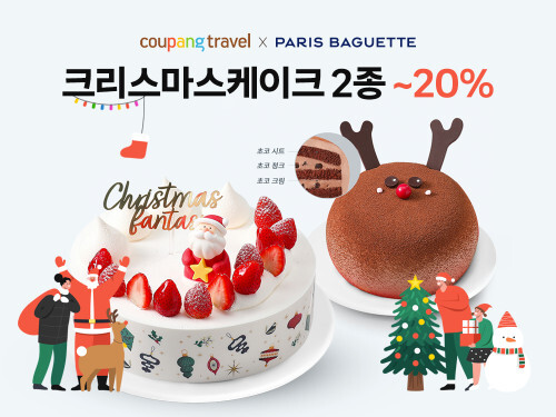 쿠팡은 이날 하루 동안 와우회원을 대상으로 파리바게뜨의 크리스마스 케이크 교환권 2종을 20% 할인가에 선보인다. 이번 행사는 쿠팡이 파리바게뜨와 함께 처음 마련한 것으로 와우회원 전용 할인코너인 ‘골드박스’에서 진행된다. 교환권은 휴대전화 문자로 받을 수 있으며, 교환 기간(20일~25일) 내 미사용 시 동일 금액만큼 다른 제품으로 교환이 가능하다. 더 자세한 내용은 행사 페이지에서 확인할 수 있다.