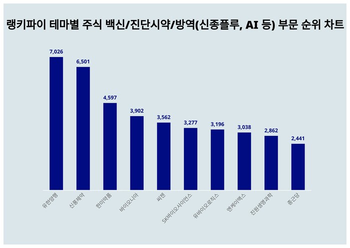 랭키파이 테마별 주식 백신/진단시약/방역(신종플루, AI 등) 부문 트렌드 지수 분석 결과