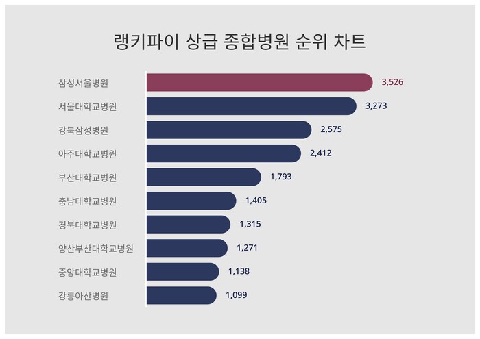 | 1 | 삼성서울병원 | 3,526 | 2% | 15% | 27% | 31% | 26% |