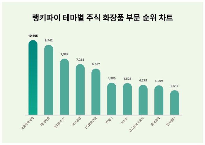 테마별 주식 화장품 부문 트렌드 지수 분석 결과 (자료=랭키파이 제공)