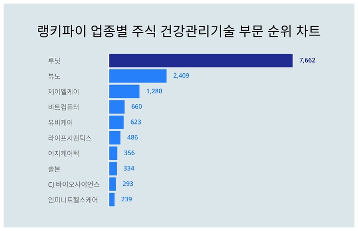 업종별 주식 건강관리기술 부문 트렌드 지수 분석 결과 (자료=랭키파이 제공)