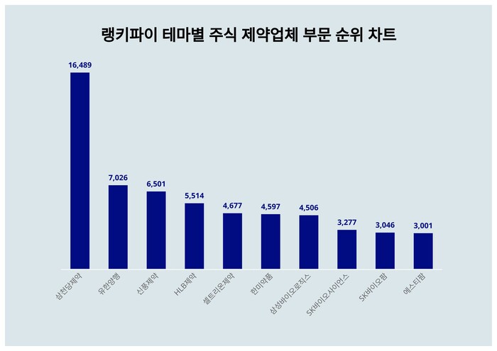 테마별 주식 제약업체 부문 트렌드 지수 분석 결과 (자료=랭키파이 제공)