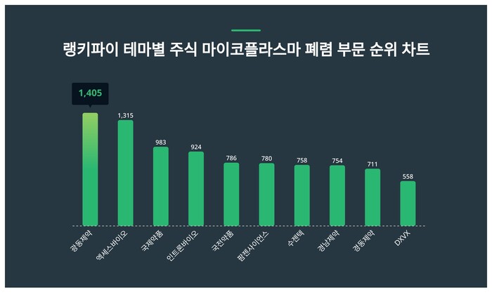 테마별 주식 마이코플라스마 폐렴 부문 트렌드 지수 분석 결과 (자료=랭키파이 제공)