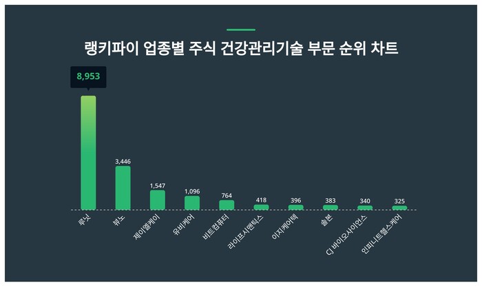 업종별 주식 건강관리기술 부문 트렌드 지수 분석 결과 (자료=랭키파이 제공)