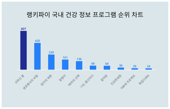 국내 건강 정보 프로그램 트렌드 지수 분석 결과 (자료=랭키파이 제공)