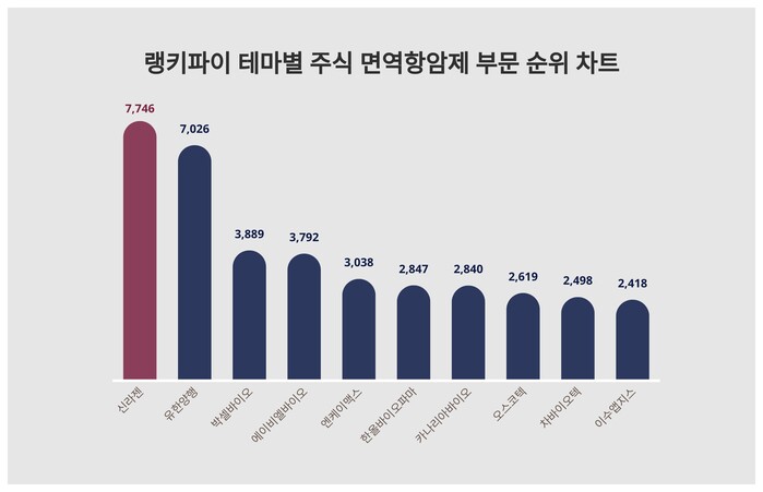 테마별 주식 면역항암제 부문 트렌드 지수 분석 결과 (자료=랭키파이 제공)