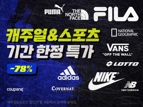 | ▲ 쿠팡이 오는 21일까지 의류와 신발 등을 할인하는 ‘캐주얼&스포츠 할인전’을 진행한다. (사진=쿠팡 제공) |