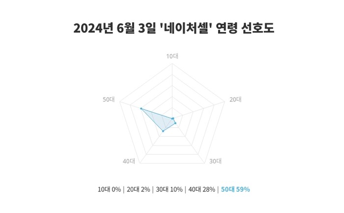 연령별 선호도 조사에서는 50대의 관심도가 59%로 나타나, 특히 50대에게서 높은 인기를 확인할 수 있었다. 이는 전일 10대 0%, 20대 3%, 30대 10%, 40대 28%, 50대 59%와 비교해 연령별 관심의 변화를 설명해 준다.