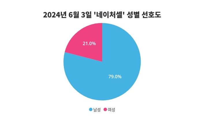 전일 성별 관심도는 남성 80%, 여성 20%의 비율로 나타났으며, 이날 네이처셀에 대한 성별 관심 조사에서는 남성이 79%의 비율로 더 큰 관심을 보이며 성별 간의 차이를 드러냈다.