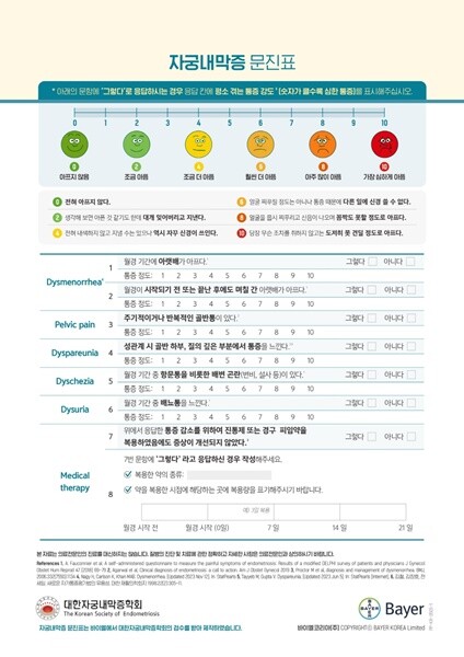 | ▲ 바이엘과 대한자궁내막증학회가 공동 제작한 자궁내막증 문진표 (사진=바이엘 제공) |