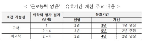 | ▲ '근로능력 없음' 유효기간 개선 주요 내용 (자료=보건복지부 제공) |