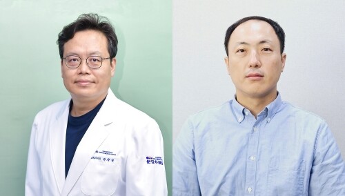 ▲ 소화기내과 권창일 교수(왼쪽), 엠아이텍 문종필 수석연구원(사진=차 의과대학교 분당차병원 제공)