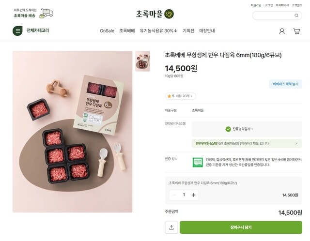 문제가 된 제품은 '초록베베 무항생제 한우다짐육 6mm'로, 흰색 플라스틱 조각이 혼입된 사실이 밝혀졌다.
