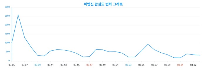 이번 분석을 통해 얻어진 파멥신에 대한 일간 변화 추이 차트는, 파멥신에 대한 관심이 어떻게 변화했는지를 드러낸다. 이 차트는 파멥신의 시간에 따른 인기 변동성을 직관적으로 이해할 수 있는 지표이다.