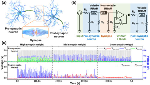 연구팀은 또한 개발한 소자를 통합, 연결해 인공 신경망의 기본 단위 블록인 ‘뉴런-시냅스-뉴런’ 구조도 하드웨어로 구현해 인간 뇌의 동작 방식인 스파이크 신호 기반 정보전달을 성공적으로 모사하는 데도 성공했다.