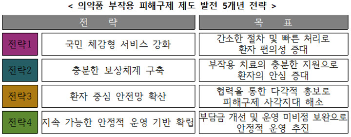 | ▲ 의약품 부작용 피해구제 제도 발전 5개년 전략 (사진=식품의약품안전처 제공) |