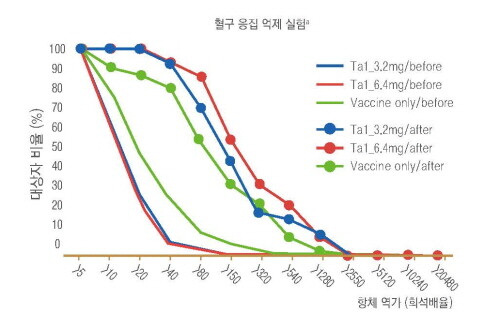 ▲ 혈구응집 억제(HI) 실험을 통한 혈청 내 항체 생성 증가(역누적분포곡선) (자료=파마리서치 제공)