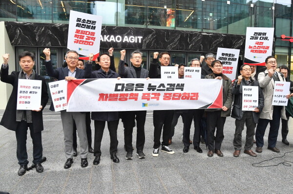 이어 “불법적이고 불공정한 검색차별이 고착화될 경우 대다수 중소언론사들은 생존마저 위협받게 될 것이다. 이는 미디어생태계의 싹을 자르고 고사시키는 다음의 슈퍼갑질의 행태라 하지 않을 수 없다”면서 “미디어산업과 공생 발전해온 다음이 스스로 미디어시장을 황폐화시키고, 사다리를 걷어차는 무책임한 횡포”라고 규탄했다.