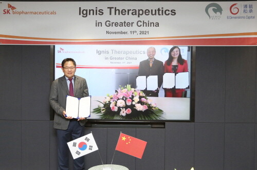 [mdtoday=김동주 기자] SK바이오팜이 상해 소재 글로벌 투자사 ‘6 디멘션 캐피탈(6 Dimensions Capital, 6D)’과 중추신경계(CNS) 제약사 ‘이그니스 테라퓨틱스(Ignis Therapeutics)’를 설립해 중국 시장에 진출한다고 11일 밝혔다.