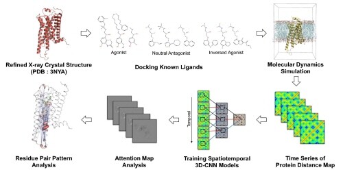 작용제와 길항제의 역할은 다르나 이 특성을 분류하는 일이 쉽지 않아 다양한 연구가 진행되는 가운데 케이메디허브 한민우 팀장은 딥러닝으로 분석하여 GPCR 작용제와 길항제의 특징을 알아내고 분류한다.
