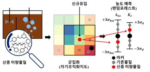 연구진은 데이터의 유사성에 따라 지도의 형태로 군집화하는 자기조직화지도 인공지능 기술을 통해 의약화합물, 카페인 등 기존에 알려진 29종의 미량물질을 물리화학적 특성, 작용기, 생물학적 반응 기작 등의 정보에 따라 분류했다.