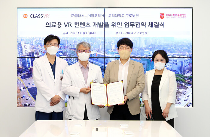 이날 협약식에는 고려대구로병원 서재홍 연구부원장, 산부인과 조금준 교수, 클래스브이알코리아 조수형 대표를 비롯한 양 기관 관계자가 참석했다.