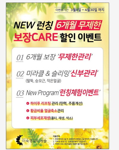이밖에 이벤트 기간 신규 회원을 대상으로 하이푸 리프팅, 황금비율 얼굴 축소 관리, 피부세포재생 등 신규 프로그램을 체험할 수 있는 기회도 제공된다.