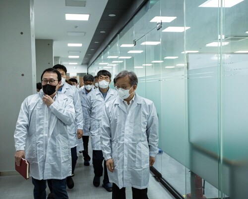 | ▲권칠승 중소벤처기업부 장관과 권영진 대구시장은 최근 엔도비전 본사를 방문해 정민호 대표의 브리핑과 함께 인체유래콜라겐 함유 창상피복재 제조시설 현장을 시찰하는 시간을 가졌다. (사진=엔도비전 제공) |
