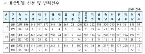 | ▲ 최근 3년간 응급입원 신청 및 반려건수 (사진= 박재호의원실 제공) |