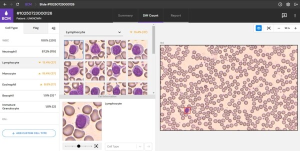 | ▲ 노을이 지난 19일 영국에서 성료된 진단혈액학 분야 최고 권위 학회 ‘ISLH 2026’에서 최신 연구 성과를 발표했다. 노을 AI 기반 혈액분석 솔루션(miLab™ BCM)을 통한 6종 백혈구 감별 결과 화면 (사진= 노을 제공) |