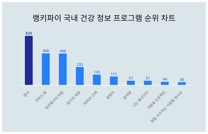 국내 건강 정보 프로그램 트렌드 지수에서 명의가 트렌드 지수 633포인트로 1위에 올랐다.
