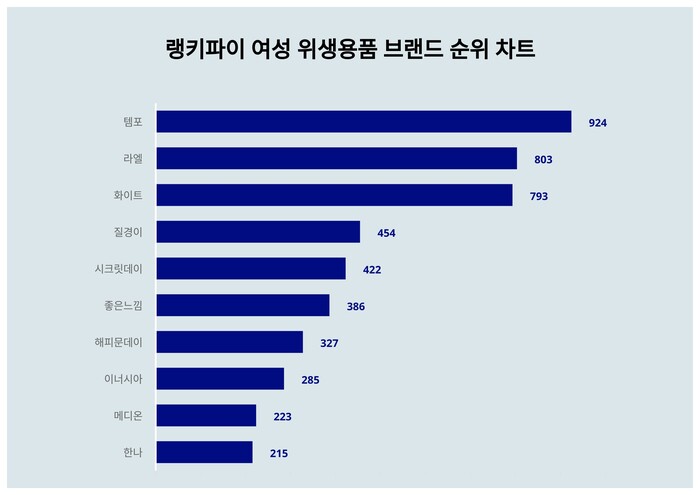 ▲여성 위생용품 브랜드 트렌드 지수 분석 결과 (자료=랭키파이 제공)