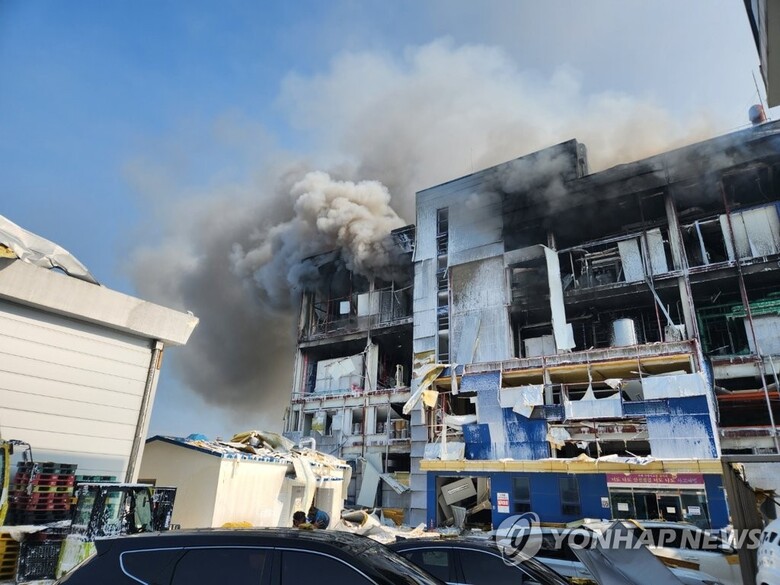 | ▲ 2022년 9월 30일 오후 2시 22분 경기 화성시 향남읍 제약공단 내 화일약품 공장에서 폭발 화재가 발생했다. (사진=연합뉴스) |