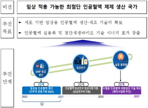 | ▲인공혈액 개발 R&D 추진 목표 및 추진 단계 (사진=기획재정부 제공) |