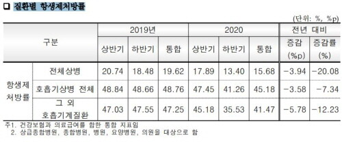| ▲질환별 항생제처방률 (자료=건강보험심사평가원 제공) |
