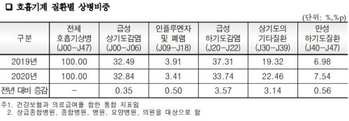 | ▲호흡기계 질환별 상병비중 (자료=건강보험심사평가원 제공) |