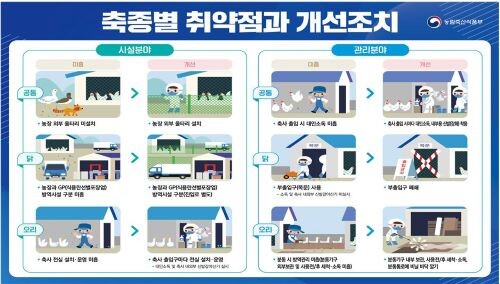| ▲축종별 취약점과 개선조치 (사진= 농림축산식품부 제공) |