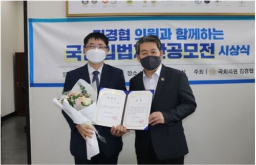 | ▲수상자 노상엽씨와 김경협 의원 (사진= 김경협 의원실 제공) |
