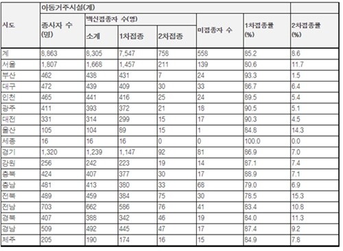 이어 “또한, 아동복지시설 종사자들의 백신접종률이 굉장히 중요한데, 정부의 백신 수급 불안으로 인해 2차접종까지 마친 완료자가 8.6%에 지나지 않고, 미접종자도 558(6.3%)명에 달하기 때문에, 이들에 대한 백신접종완료를 서두를 필요가 있다”고 전했다.