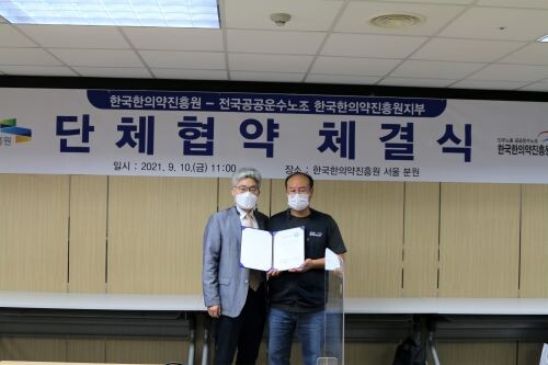 한국한의약진흥원은 10일 민주노총 전국공공운수사회서비스노조 한국한의약진흥원지부와 노사 상생협력을 위한 단체협약을 체결했다고 밝혔다.