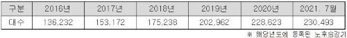 연도별로는 2016년 44건, 2017년 27건, 2018년 21건, 2019년 72건, 2020년 86건이었으며 올해 7월까지도 41건의 사고가 발생했다.